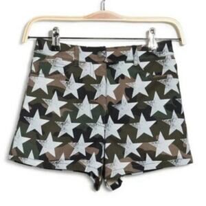 A high-waisted pair of shorts features a colorful star pattern for a chic new addition to your wardrobe. Sizing is European:
