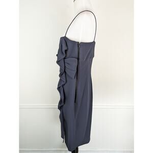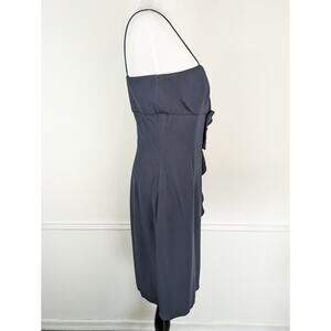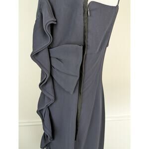 Valentino Dress Formal Bow Ruffle Satin Trim Evening Navy Blue Vintage Size 10
