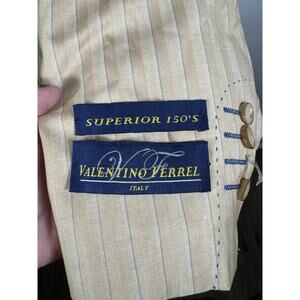 Valentino Ferrel Superior 150’s Beige Pinstripe Suit Jacket 48L / Pants 43L