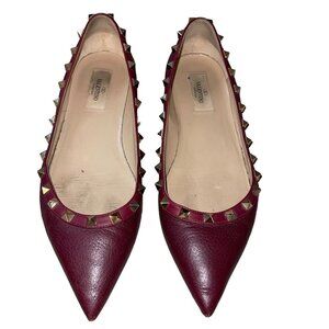 Valentino Garavan Womens Flats Size 9.5 Burgundy Leather Pointed Toe Ballet
