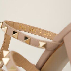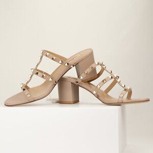 Valentino Garavani 60mm Rockstud Sandal, Poudre Tan, EU 40.5