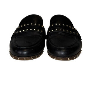 Valentino Garavani Black Leather Rock Stud Mules Size 39 Clogs