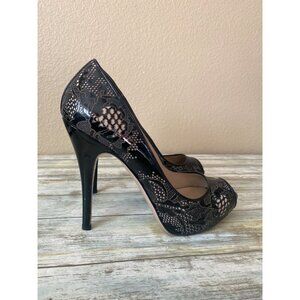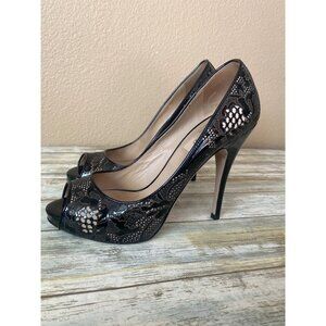 Valentino Garavani Black Patent Lace Peep Toe Pumps Heels Size 37.5 (7.5 US)