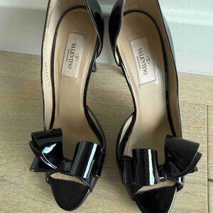 Valentino Garavani Black Patent Platform Peep Toe Bow Pumps