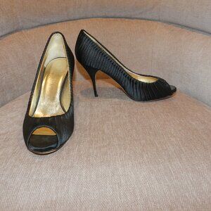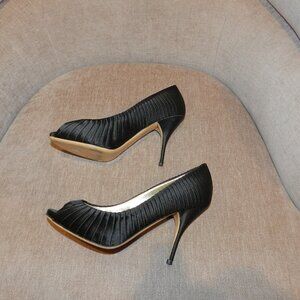 Valentino Garavani Black Peep Toe Pump Tuxedo Pleated Satin. In good used condition, only worn a few times. Size 36 1/2. See pictures for additional description.