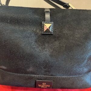 Valentino Garavani Black Pony Hair Bag with Gold hardware/rock studs
