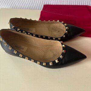 Elegant black flats with signature gold studs. Sleek and stylish design.