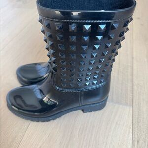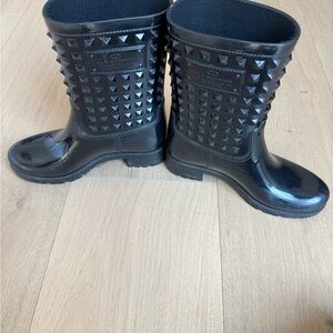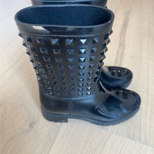 Used Valentino black rain boots with bold studded design. Perfect for winter weather. There’s a lot of life left in these boots. Soles are great. Unfortunately I don’t have the shoe box anymore