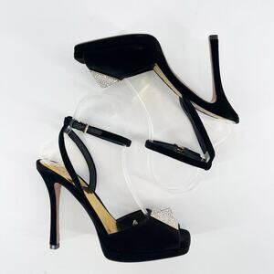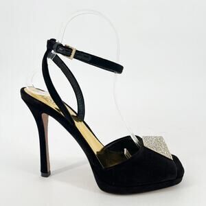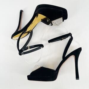 Valentino Garavani Black Velvet Crystal Embellished One Stud Sandal Heel EU 38