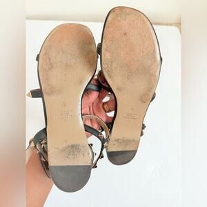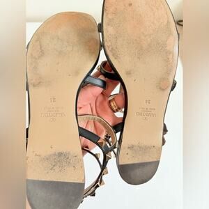 Valentino Garavani Black leather Gold Rockstud ankle strap flat sandals EU 38