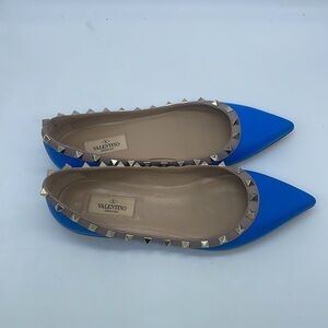 Valentino Garavani Blue leather beige trim Rockstud Ballerina flats 37.5