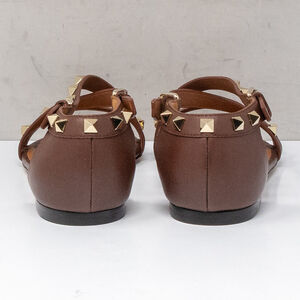 Valentino Garavani Brown Rockstud Crisscross Flat Sandals, Size 36.5 EU (6.5 US)