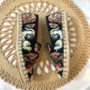 These are gently used Valentino Garavani Butterfly-Embroidered Fabric Espadrilles in Black/Multi. In very good condition. Signs of wear on soles. See all pics for condition. $1095 retail. A few minor loose threads on embroidery. Does not come with original box or dust bag. Authentic.