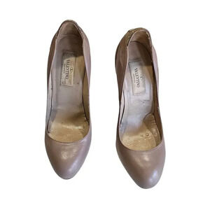 Valentino Garavani Crystal Embellished Leather Pumps Nude Beige Size 5