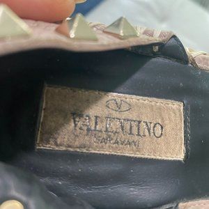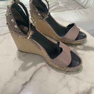 Valentino Garavani Double Rockstud wedge in elk-print calfskin leather.