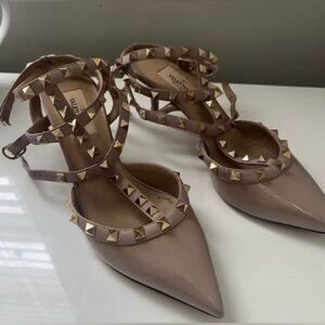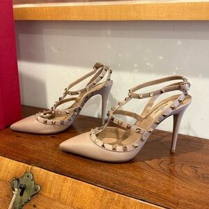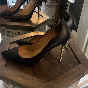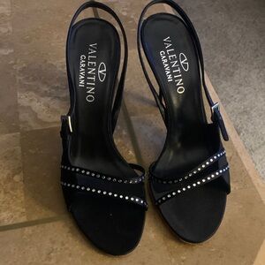 Valentino Garavani, EU 38 US 7.5, Black Heels w/ Gold Stud Accents.