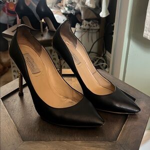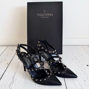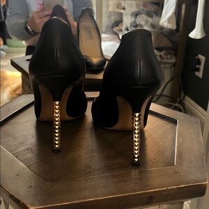 Valentino Garavani, EU 38 US 7.5, Black Heels w/ Gold Stud Accents