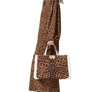 Valentino Garavani Escape canvas handbag with Animalier print. Leather trim and VLogo Signature element on the front.