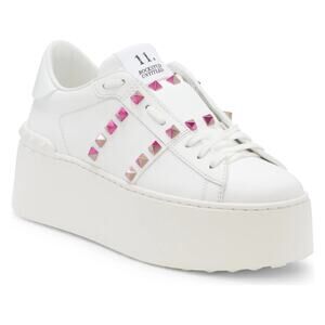 Valentino Garavani Rockstud Untitled Platform SneakersTwo-tone signature pyramid studs punctuate the leather upper of this Italian-crafted platform sneaker refined with an innovative lacing technique.