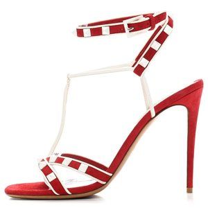 Brand New, Never Used, 100% authentic Valentino Garavani Free Rockstud Ankle Wrap High Sandal in two-tone Red/White color. EU size 39.5, US size 9.5B.