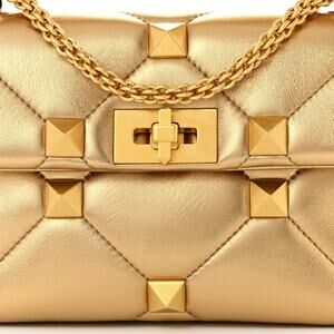 Valentino Garavani Gold Metallic Nappa Medium Roman Stud Rockstud Bag NEW