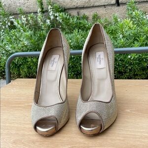Valentino Gold Peep Toe Platform Heels - Size 40 in excellent used condition