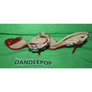 Valentino Garavani Gold Rockstud Red Calfskin Leather Sandal Heels Size 37