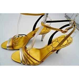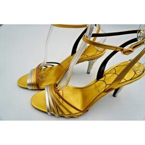 Valentino Garavani Ladycrush Metallic Crystal Embellished Ankle Strap Heel 41.5