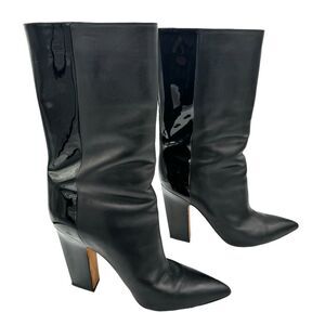 Valentino Garavani Leather And Patent Runway Angular Heel Boots Black Size 9.5