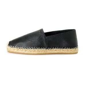 This is authentic Valentino Garavani Men's Black Leather V Logo Espadrilles Slip On Shoes