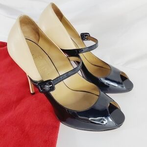Valentino Garavani PATENT LEATHER SANDALS Strap Pumps 2tone color block size 38