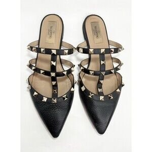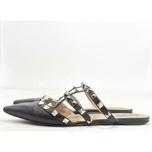 Valentino Garavani Pebbled Calfskin Rockstud Flat Cage Mules Gold Sz EU 36 6