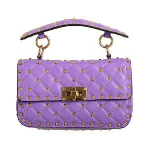 VALENTINO GARAVANI WOMEN'S ROCKSTUD SPIKE LEATHER HANDBAG SHOULDER BAG WISTERIA