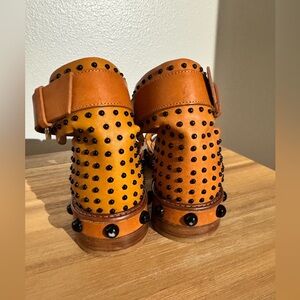 GORGEOUS, luxury sandals from Red by Valentino Garavani. Signature valentino studded style with circles. These are substantial and made of high quality materials! They have a few flaws, including a missing stud on the front of one shoe, some wear to the inner and bottom soles. One of the shoes has a sharpie mark on the bottom. Please review photos! Rare find - retail around $1300. Size is an IT 39, US 9 equivalent. Offers welcome!