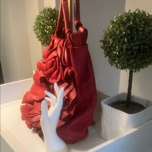 Valentino Garavani Red Ruffled Tote Bag