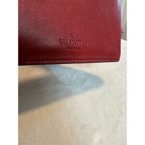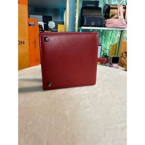 Valentino Garavani Rock Stud Red Bifold Wallets with Rivers Metallic Black
