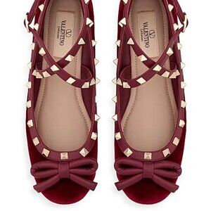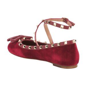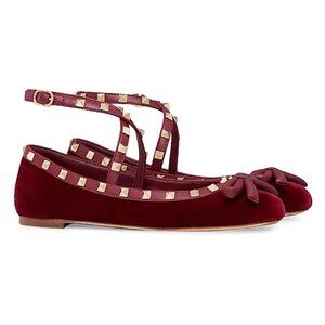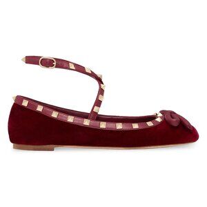 Valentino Garavani Rockstud 5MM Velvet Ballerina Flats Cherry Red