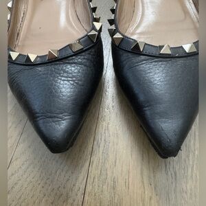 Valentino Garavani Rockstud Ballet Pointed Toe Flats Black Grained Leather US 7