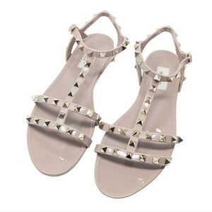 Valentino Garavani Rockstud Beige Flat Jelly Rubber Sandals Size EU 40