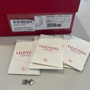 This is an authentic pair of Valentino Garavani Rockstud open toe espadrille wedges.