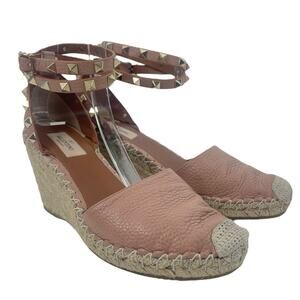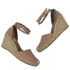 Valentino Garavani Rockstud Double Leather Wedge Espadrille Pink Size 39