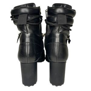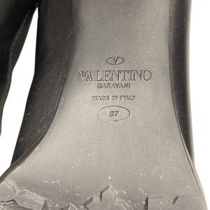 Add bold sophistication to your look with these black heeled Valentino combat booties. Crafted from smooth, high-quality leather, these booties combine edgy attitude with refined Italian craftsmanship. The lace-up combat style is elevated by a sleek block heel, offering both height and comfort, while signature Valentino details like subtle stud accents give them a distinctive designer touch. Perfect for pairing with everything from jeans to dresses, these versatile booties bring a modern, confident edge to any outfit.