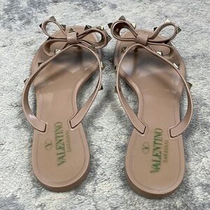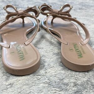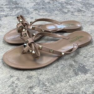 Valentino Garavani Rockstud Jelly Thong Sandals Bow Toe Tan Sz 37