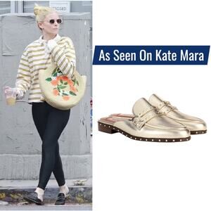 Valentino Garavani Rockstud Leather Mules Slide Agento Gold Size 40.5