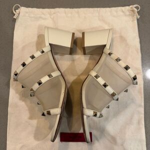 Valentino Garavani Rockstud Mesh Slide Sandal Light Ivory Size 37.5