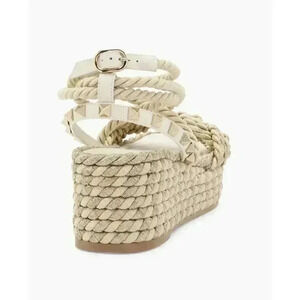 Valentino Garavani Rockstud Platform Sandals Rope Wedge Metallic Braided 40 10