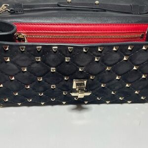 Valentino Garavani Rockstud Spike Black Velvet Wallet on Chain ✨