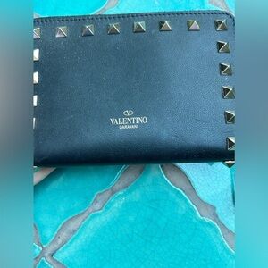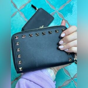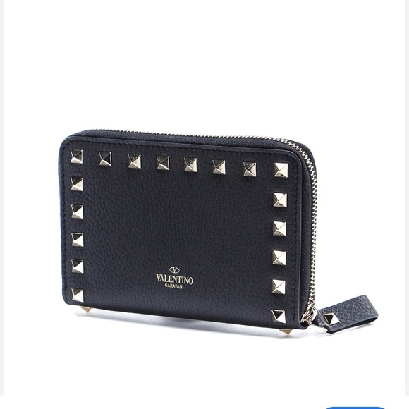 Valentino Garavani Rockstud Zip-around Leather Wallet + change Wallet In Black