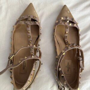 Valentino Garavani Rockstud patent leather ballet flats Tan Size 38
