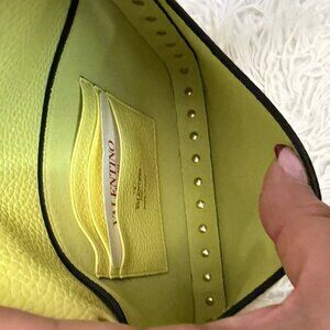 Valentino Garavani Rockstud pouch in grainy calfskin leather yellow